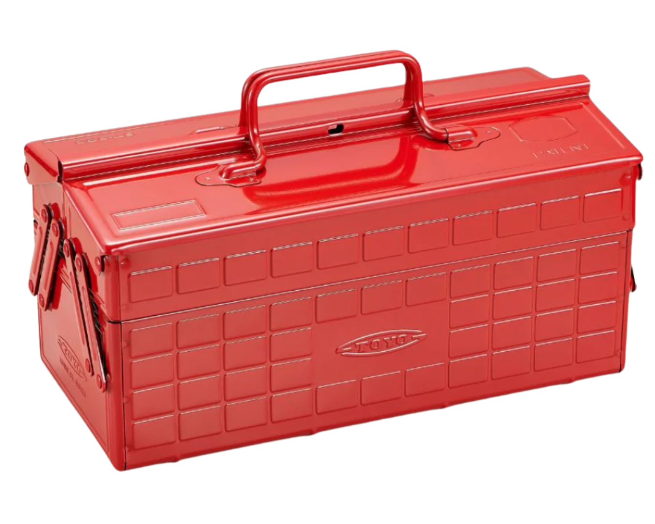 TOYO CANTILEVER TOOLBOX ST-350 R (RED) I’ve collected so many art supplies since my freshman year of design school and currently they live in a plastic fishing tackle box and the lid is falling off, this metal one would be a much needed upgrade.