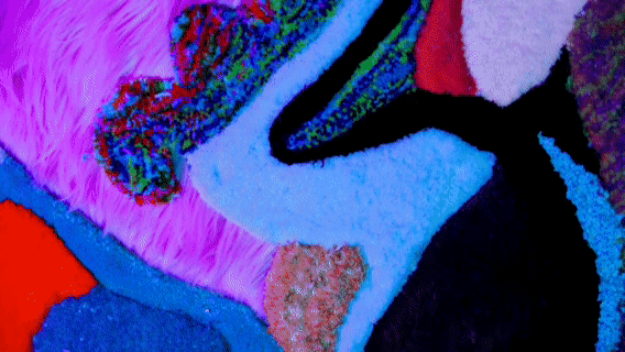 Embracing touch, sensuality, and sexuality, their artistic practice creates a world of its own. Their “Safe Space” installation can be experienced at the 50th St. 1 platform; a habitat of vibrance and funky flavors contrasts with the grime of the underground station. Currently on residency at Factory on Willow, they continue to push their exploration of expression through the process of rugmaking, soft sculptures, and spatial installations.